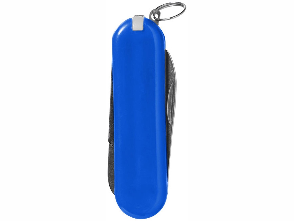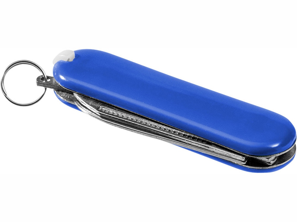 : Карманный нож с ножницами на пружине, пинцетом, зубочисткой, пилкой для ногтей и миниатюрным кольцом для ключей.