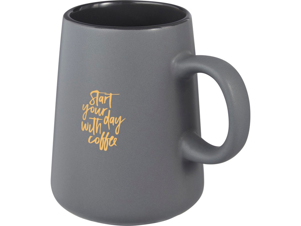 Керамическая кружка Joe с удобной круглой ручкой матовая снаружи и глянцевая внутри. Объем 450 мл. Можно мыть в посудомоечной машине независимо от методов нанесения печати. В подарочной коробке из переработанного картона. Тампопечать (1 цвет (цветные изделия)) на данный товар осуществляется бесплатно. Оплачивается только настройка оборудования в размере 8200 рублей на весь тираж.