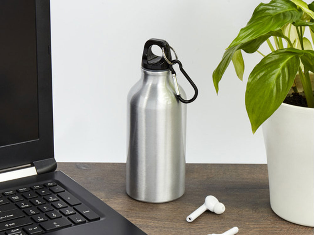 С этой прочной, но легкой бутылкой из переработанного алюминия, сертифицированного по стандарту RCS, объемом 400 мл вы никогда не будете испытывать жажду. Это незаменимая вещь для тренировок, однодневных поездок или работы в офисе. Одностенная бутылка Oregon с закручивающейся крышкой имеет достаточно места для нанесения любого логотипа. Надежно закрепите прилагаемый карабин (не подходит для скалолазания) на сумке, чтобы не потерять его. Без содержания BPA, протестировано и одобрено согласно немецкому законодательству о безопасности пищевых продуктов (LFGB) и проверено на содержание фталатов согласно нормам REACH. 100 % переработанный алюминий составляет 87 % бутылки, а остальная часть изготовлена из пластика. Трафаретная печать круговая (1 цвет (цветные изделия)) на данный товар осуществляется бесплатно. Оплачивается только настройка оборудования в размере 6400 рублей на весь тираж.