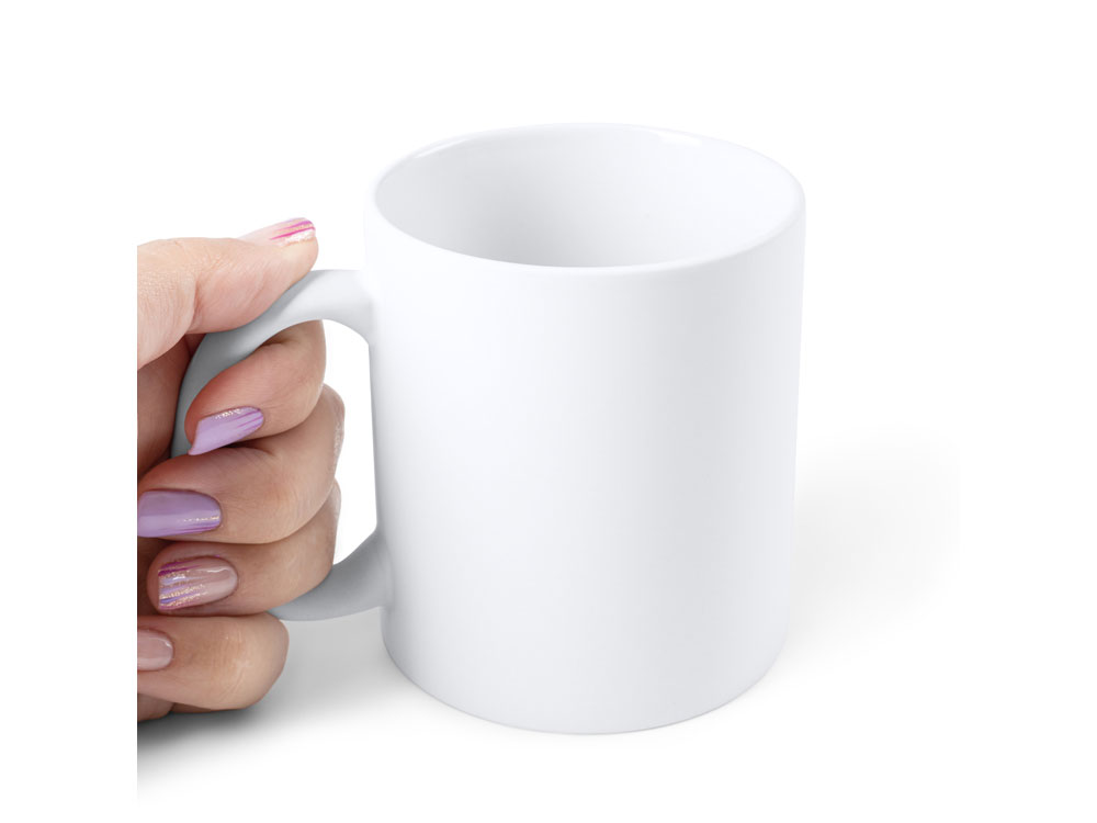 Матовая керамическая кружка объемом 350 мл для сублимации. Поставляется в белой упаковке.