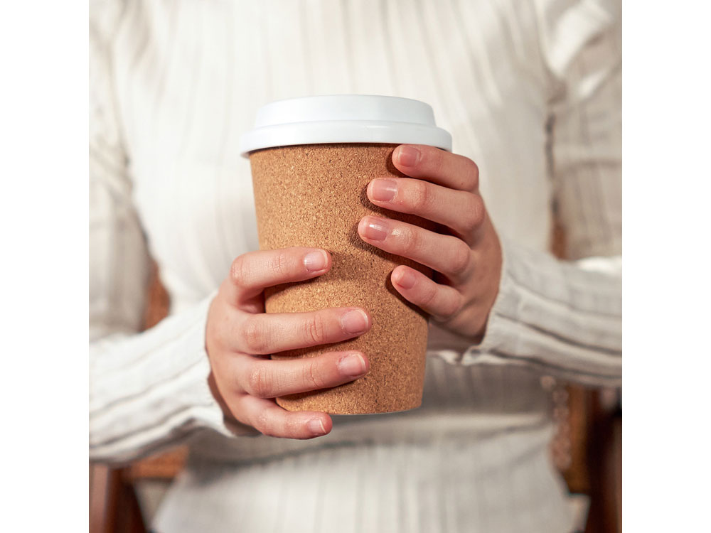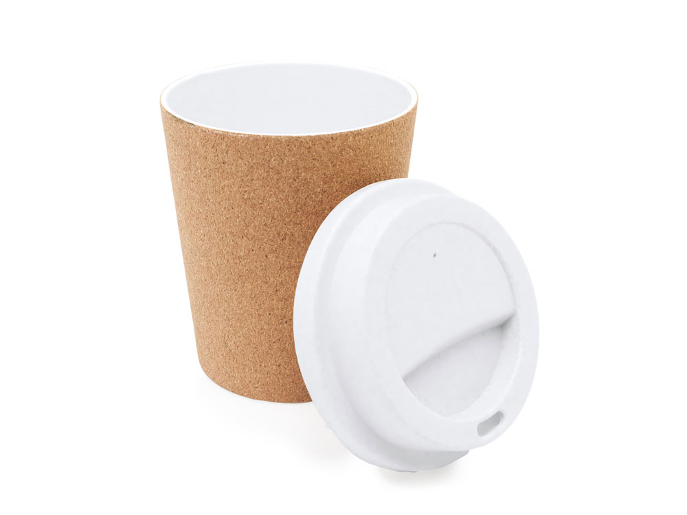 Стакан многоразовый, емкостью 380 мл. Корпус из полипропилена, покрытый натуральной пробкой. Чашка с крышкой. Вы можете взять свои любимые напитки куда угодно.