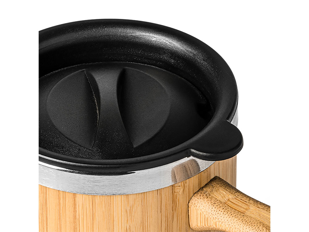 Кружка из нержавеющей стали с двойными стенками и бамбуковой поверхностью. В комплекте колпачок-дозатор. Объем 340 мл. Вес: 170 Материал товара: нержавеющая cталь, бамбук, нержавеющая cталь/бамбук Размер товара (см): 10,8 Объем: 340
