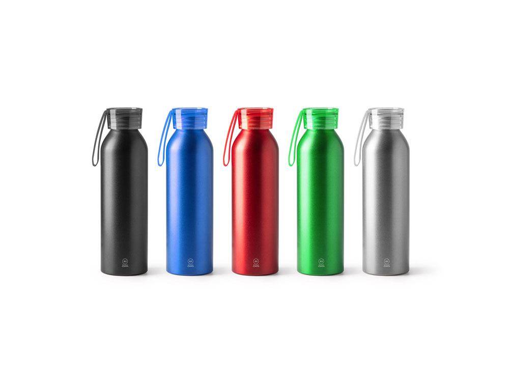 Бутылка из переработанного алюминия с крышкой и ремнем для переноски. Объем 600 мл. Вес: 220 Материал товара: переработанный алюминий Размер товара (см): d6,6 х 22,5 Объем: 600