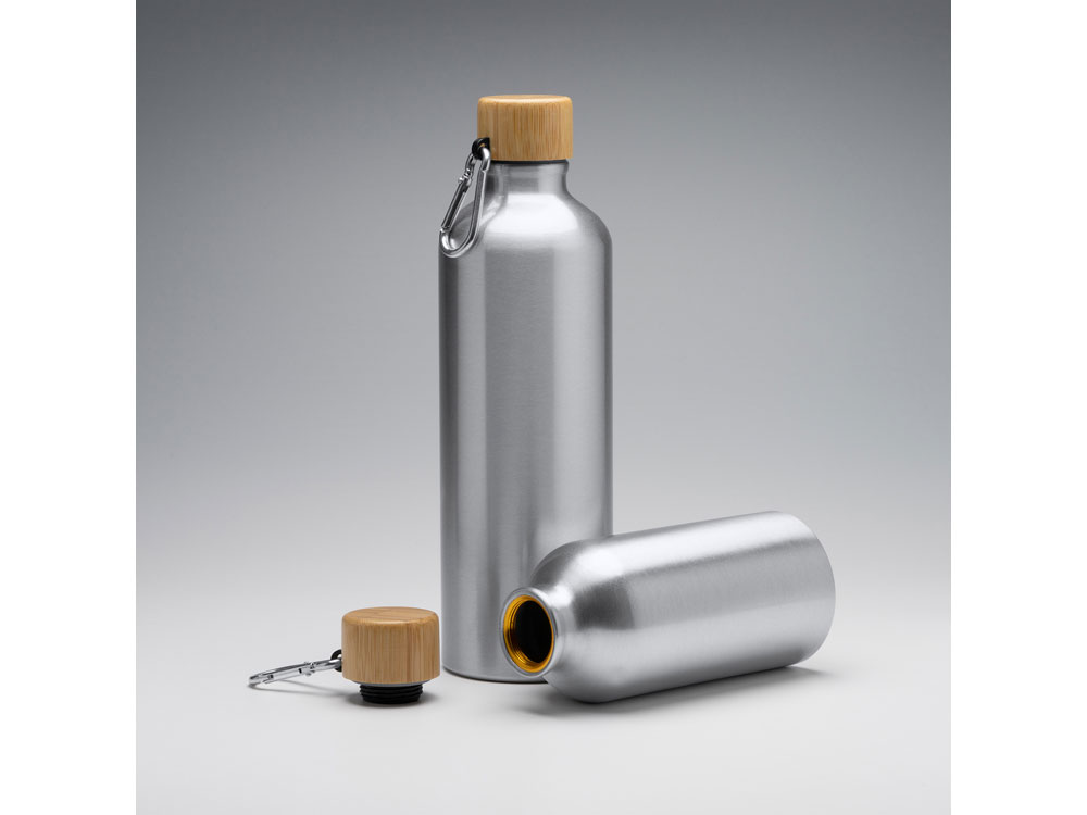 Бутылка GELDA алюминиевая с бамбуковой крышкой, 400 мл, серебристый/натуральный