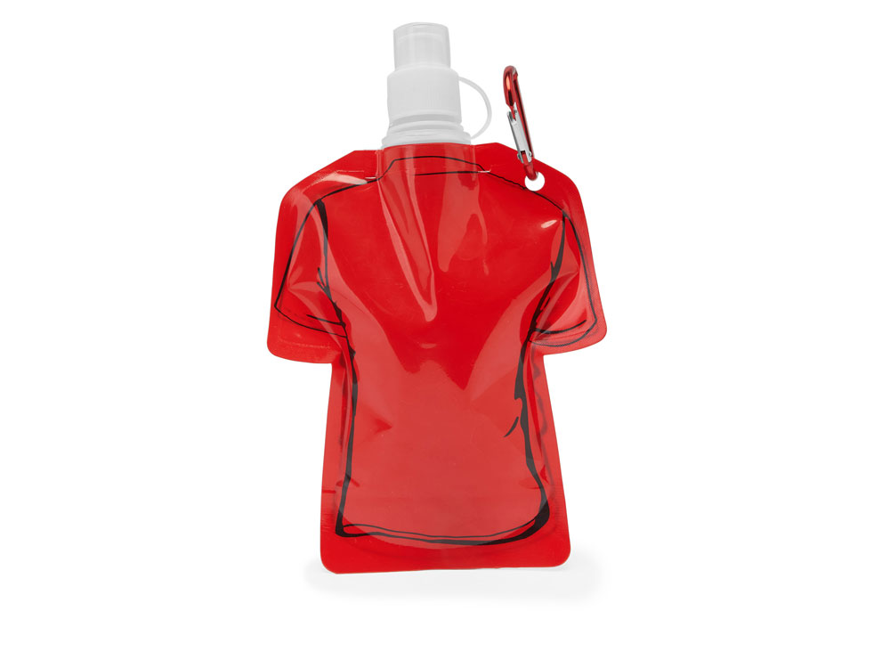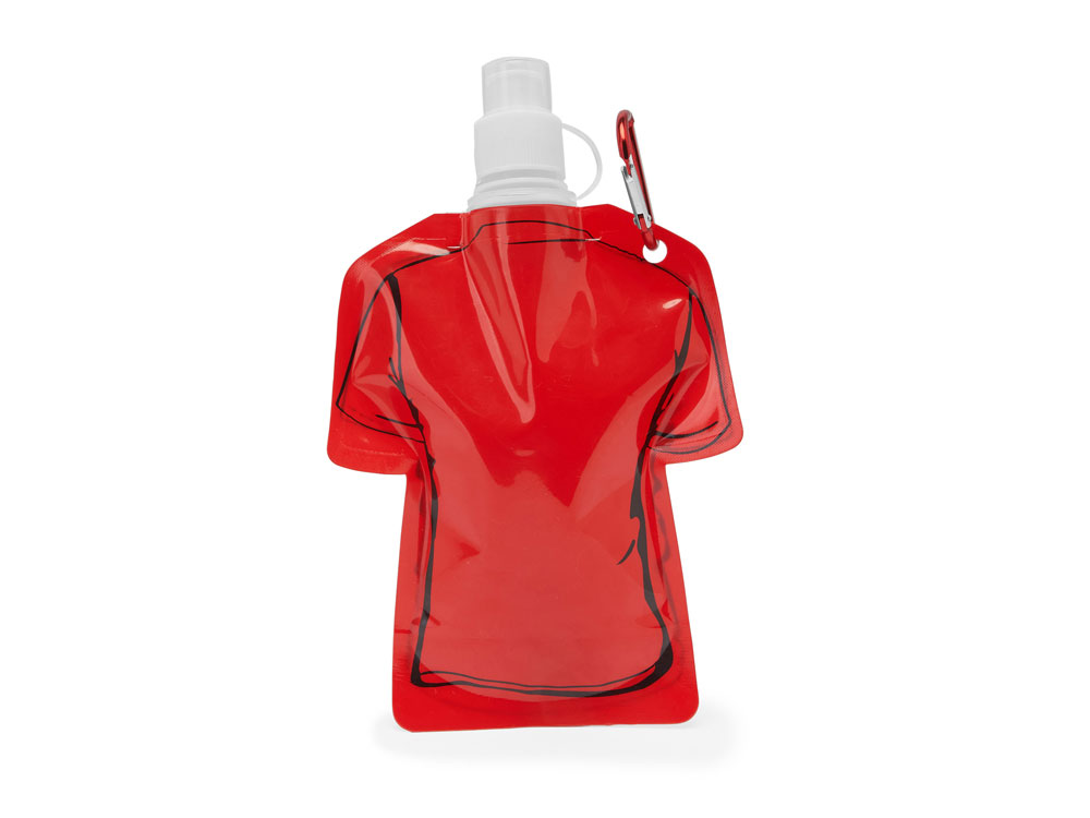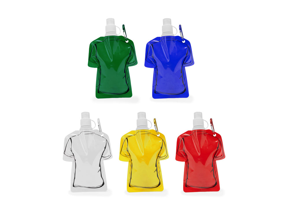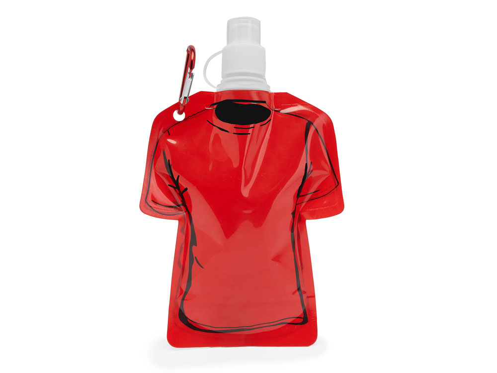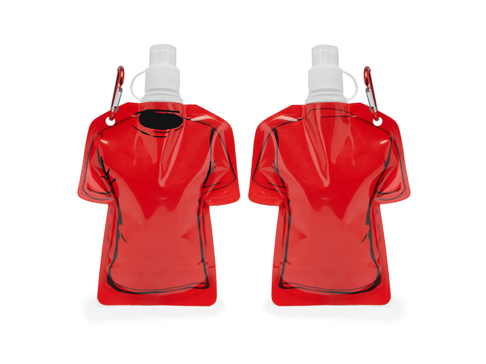Гибкая емкость для питья в форме футболки, с защитным колпачком и карабином для удобства транспортировки. Объем 470 мл. Вес: 30 Материал товара: ПЭТ Размер товара (см): 17 х 3,3 х 25,5 Объем: 470