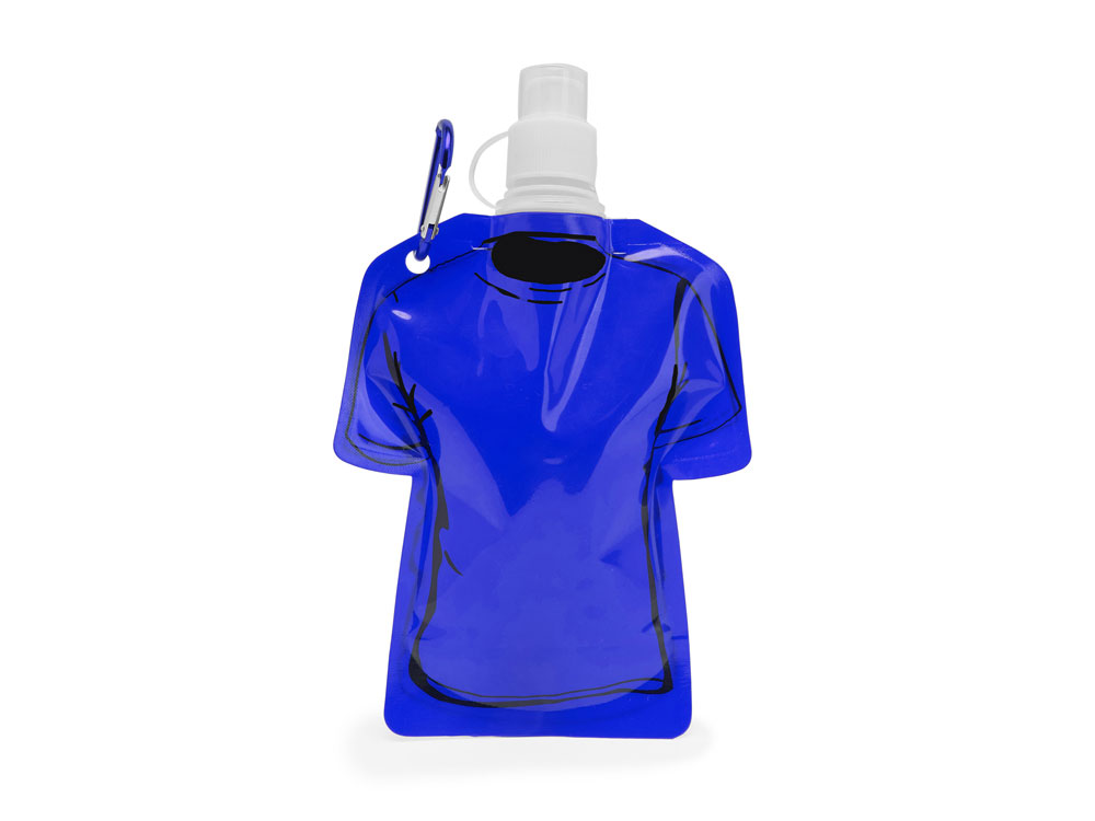 Гибкая емкость для питья в форме футболки, с защитным колпачком и карабином для удобства транспортировки. Объем 470 мл. Вес: 30 Материал товара: ПЭТ Размер товара (см): 17 х 3,3 х 25,5 Объем: 470