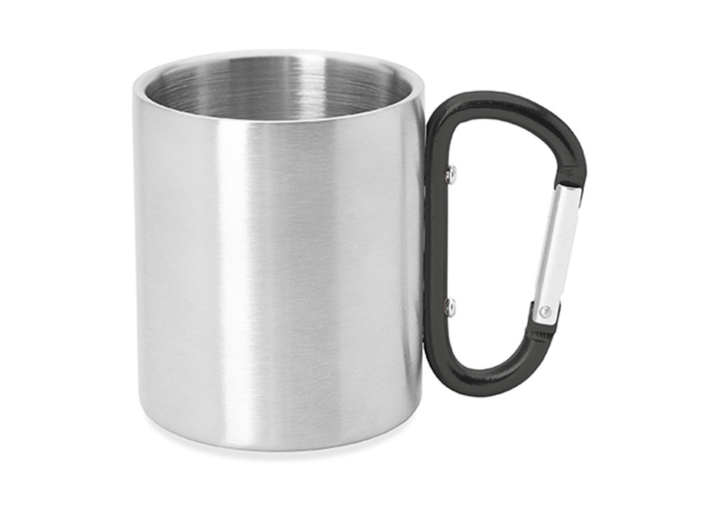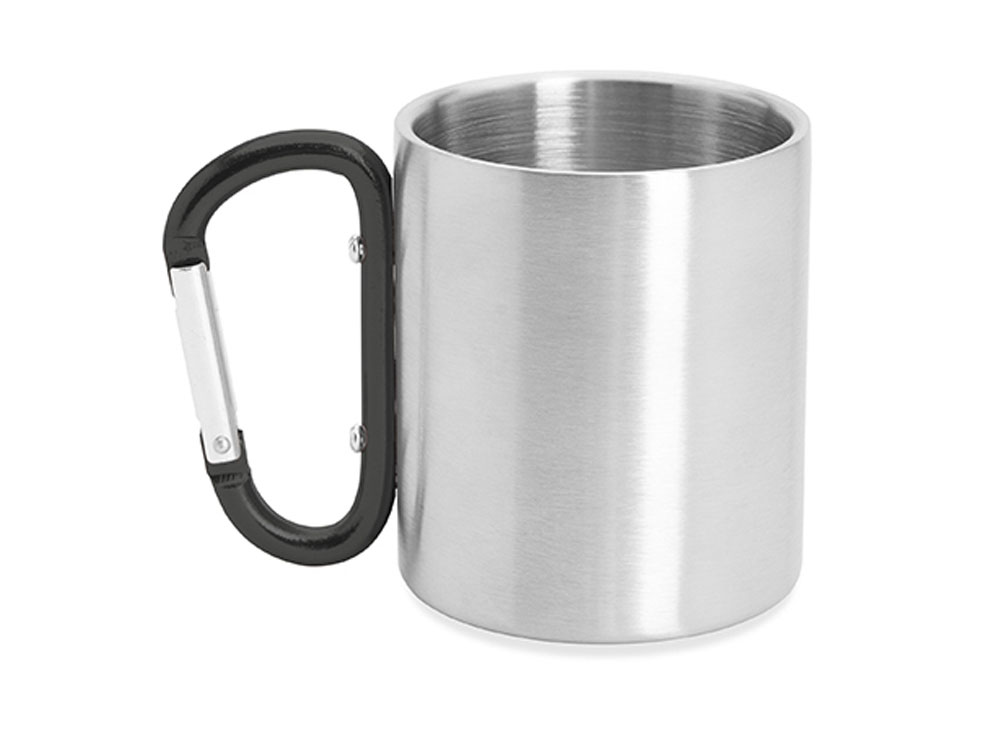 Двустенная металлическая кружка с ручкой-карабином. Доступен в различных цветах. Объем 230 мл. Гравировка (оптоволоконный лазер) (Без чернения) на данный товар осуществляется бесплатно. Оплачивается только настройка оборудования в размере 1100 рублей на весь тираж.