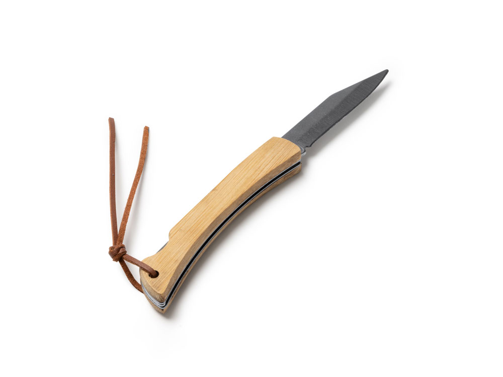 Нож из нержавеющей стали с рукояткой из натурального бамбука.