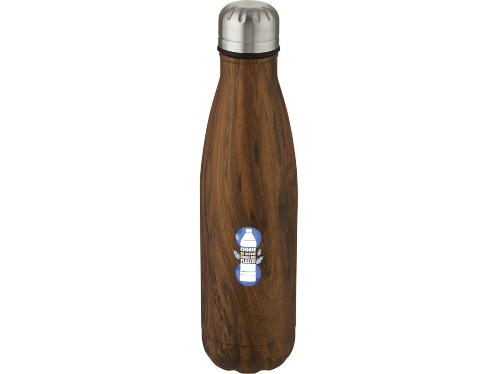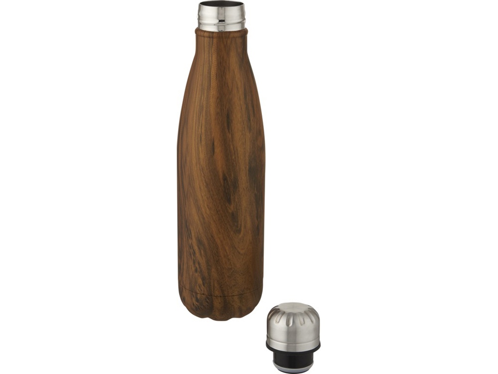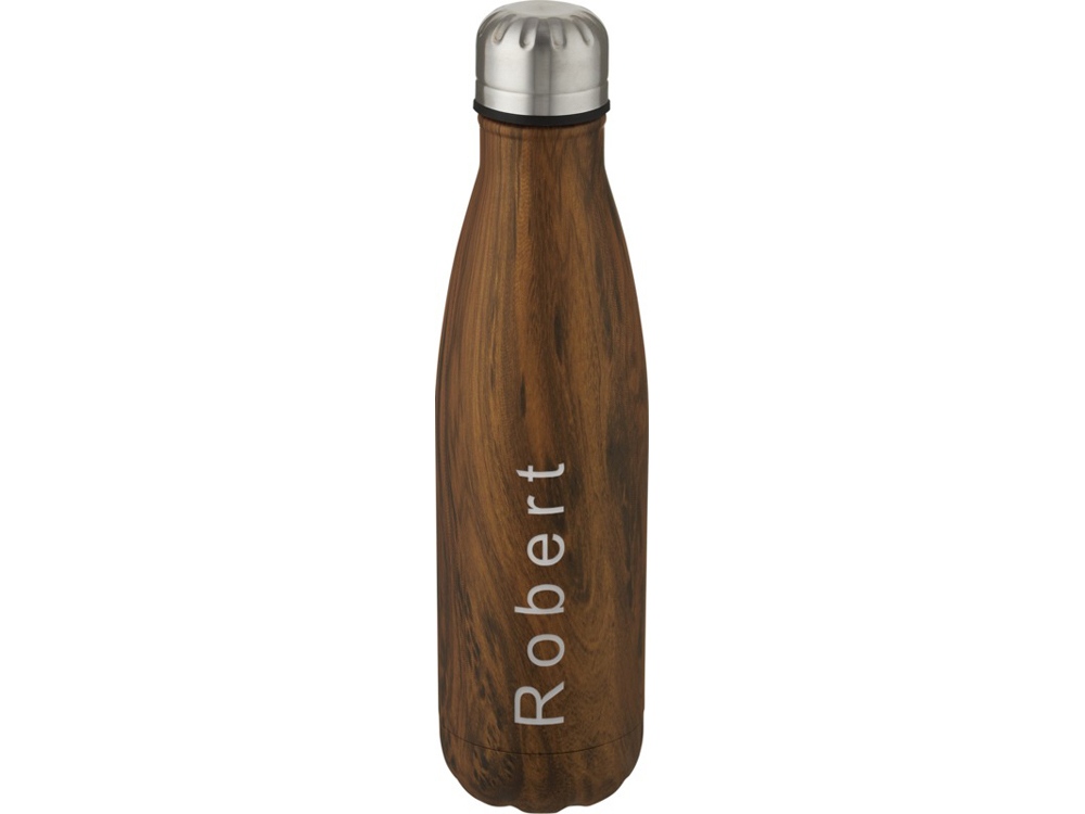 Бутылка из нержавеющей стали с вакуумной изоляцией с культовым дизайном и отделкой под дерево. Благодаря изоляции и нержавеющей стали 18/8 напитки несколько часов остаются горячими или холодными. Не содержит БФА, испытана и одобрена в соответствии с немецким законодательством о безопасности пищевых продуктов (LFGB). Проверена на содержание фталатов и одобрена для использования в соответствии с правилами REACH. Эта элегантная бутылка для воды, основание которой помещается в большинство подстаканников, является идеальным рекламным продуктом. Объем 500 мл. Рекомендуется мыть вручную. В подарочной коробке из переработанного картона.