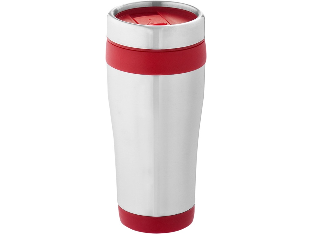 Термостакан Elwood из переработанной нержавеющей стали, 410 мл - Серебристый/Красный