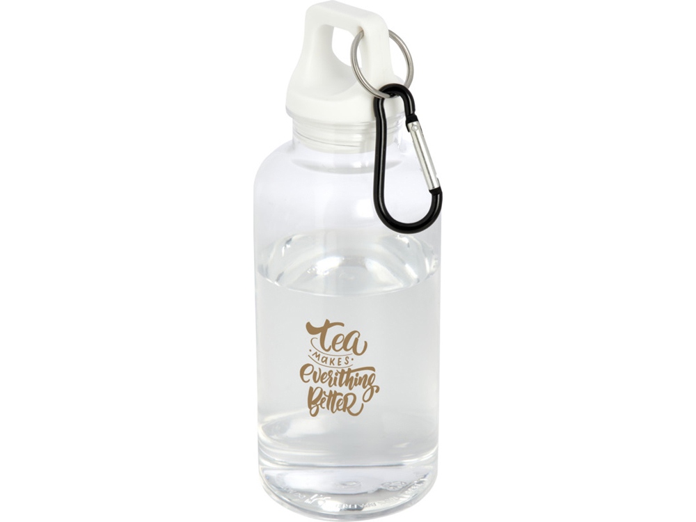 Бутылка для воды с карабином Oregon из переработанной пластмассы, 400 мл - Белый