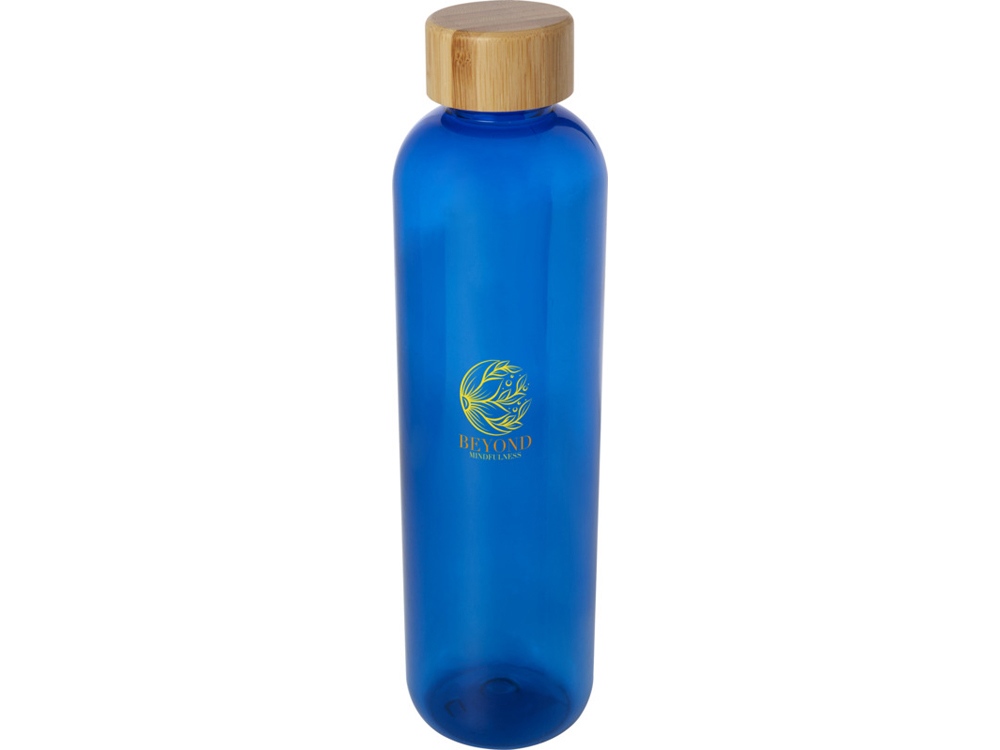 Многоразовая бутылка для воды из переработанной пластмассы со стильной бамбуковой крышкой. Бутылка с одинарными стенками не содержит БФА, протестирована и одобрена в соответствии с немецким законодательством о безопасности пищевых продуктов (LFGB). Проверена на содержание фталатов и одобрена для использования в соответствии с правилами REACH. Бамбук производится из устойчивых, экологически и социально ответственных источников. Объем 950 мл. Рекомендуется мыть вручную. Поставляется в подарочной коробке из переработанного картона. Переработанный PET пластик, Бамбуковое дерево, Recycled PP Plastic. Packaging: FSC Mix Credit P5.1 CU-COC-877277. FSC 100% N5 CU-COC-877277.