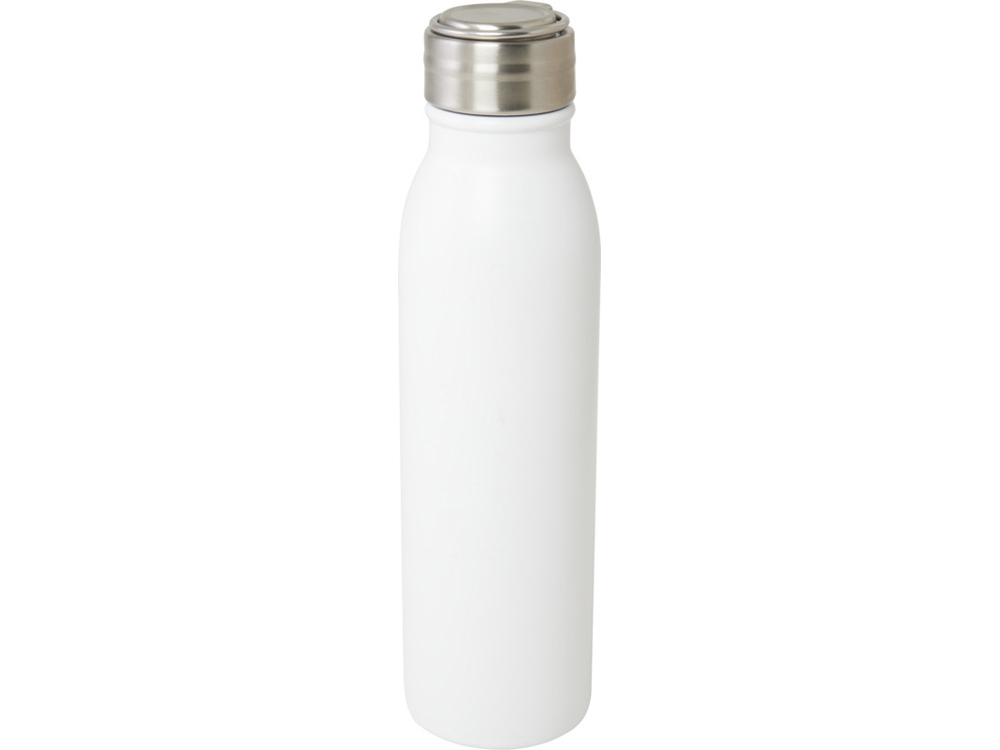Одностенная бутылка для воды из нержавеющей стали, сертифицированной RCS, с завинчивающейся герметичной крышкой и прочной петлей для переноски из цинкового сплава. Не содержит БФА, протестирована и одобрена в соответствии с немецким законодательством о безопасности пищевых продуктов (LFGB). Проверена на содержание фталатов и одобрена для использования в соответствии с правилами REACH. Подходит для большинства стандартных автомобильных подстаканников. Объем 700 мл. Рекомендуется мыть вручную. Поставляется в подарочной коробке из переработанного картона. Recycled stainless steel, Recycled PP Plastic. Packaging: FSC Mix Credit P5.1 CU-COC-877277.